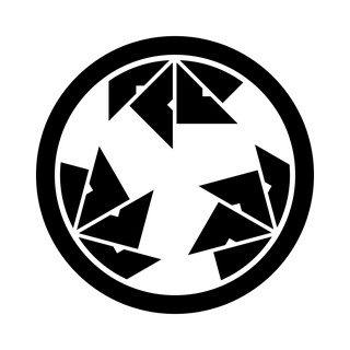中輪に三つ割四つ目車(ちゅうわにみつわりよつめぐるま)、目結紋のひとつ。