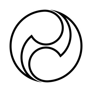 陰左二つ巴(かげひだりふたつともえ)、巴紋のひとつ。