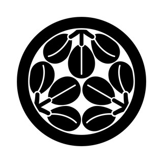 丸に九枚萩(まるにくまいはぎ)、萩紋のひとつ。